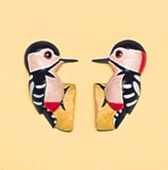 「アカゲラ」はキツツキの仲間で、森にこだまするドラミングが特徴。 「ペア・アカゲラ」 ■サイズ:約3cm