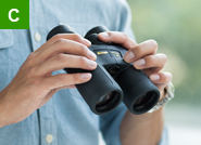 例えば、道からはずれずに周囲の草花を見たり、近づくと姿を隠してしまう虫を見たりするときには、最短合焦距離が短い双眼鏡が役立ちます。